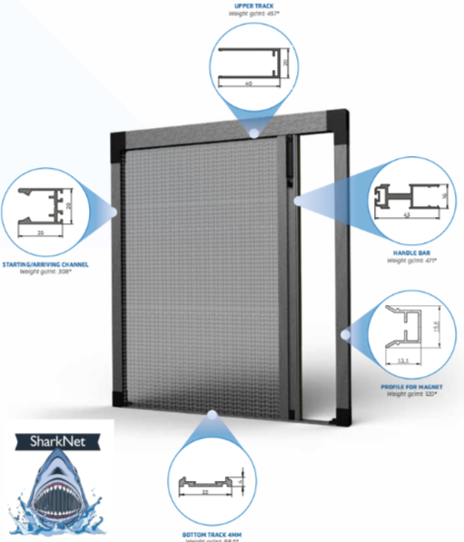 We manufacture Italian award winning "Sharknet" Pleated Fly screen system, of which all components are produced in Italy, so it's a great system in many ways compared to the majority in the market and has some significant benefits to most systems available.
