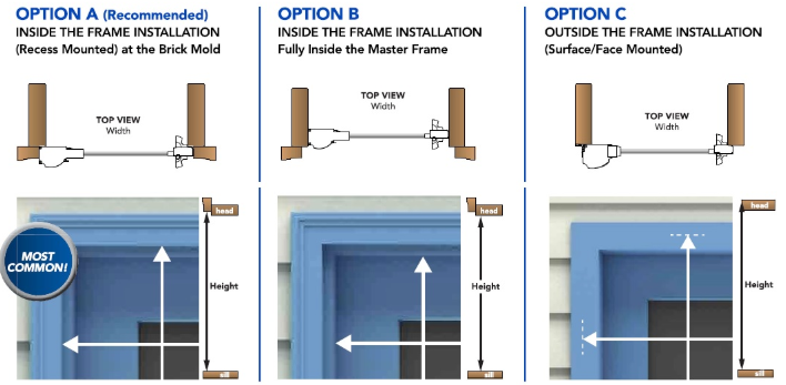 - Will it be installed inside the frame (Recess / Reveal Fit) or outside (Face Fit)