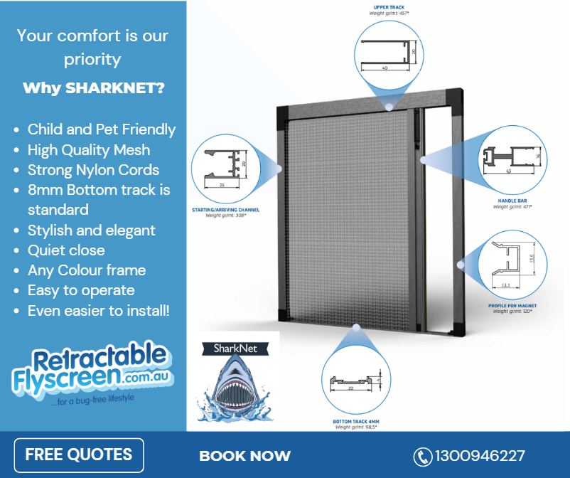 Our patented European Designed SharkNet Retractable French door retractable flyscreens solve this problem with our unique kid and pet friendly mesh.